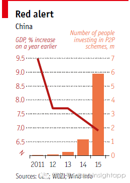 图片解释:GDP的增速和P2P投资额对比,去年出现大量P2P投资