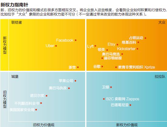 如何培育新权力多数企业意识到权力的本质在发生变化。但只有少数企业明白如何做才能在新时代产生影响力。企业看到一些组织使用社交媒体产生了巨大效果,所以未加思索地加入了一些技术,却没有改变价值观或者商业模式。有的公司设立了首席创新官,这一行为就像在旧权力的领导脸上贴了“数字胡子”一样流于表面。他们通过“推特”来扩大影响力,CEO和员工不定时地使用谷歌hangout进行对话,但本质上仍然封闭,最后弄得不伦不类。
